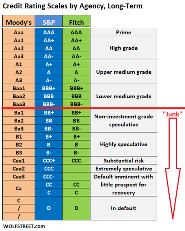 Nota: Los bonos con un rating inferior a BBB-/Baa3 son los llamados “bonos basura” o high yield. El nombre de "basura" es un tanto exagerado, no es lo mismo un rating de CC que un rating de BB. Los bonos con un rating de BBB-/Baa3 o superior son los llamados investment grade. El rating AAA representa la máxima calidad crediticia.